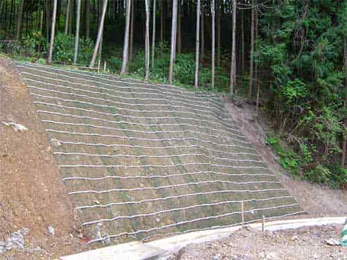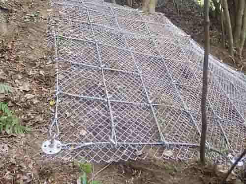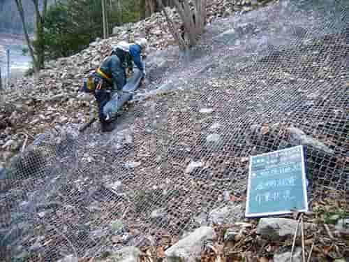 風化の進んだ岩やれき混ざりの硬土の切土法面、浮石のある自然斜面より岩や岩片がはく落し、道路上に転落する恐れのある箇所に用いる工法。