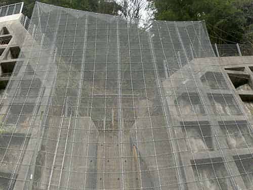 ワイヤーロープをメッシュ状に設置することにより、落石を発生源で押さえ込みます。