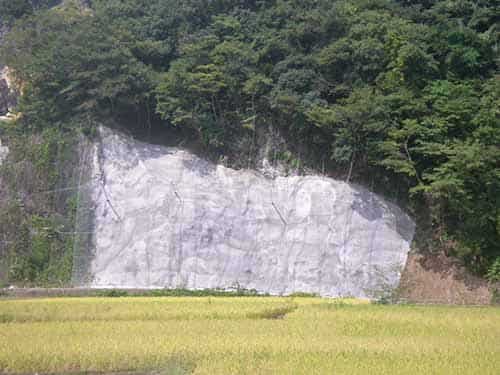 自然環境の整備から法面緑化の要望は大きい。岩盤、崖錘状態の無土壌地などを緑化する場合には、必ず植物が依拠する生育基盤を人工的に造成しなければならない、有機質土壌改良材を主材料とする植物生育基盤材をモルタル吹付機を使用し、造成する緑化工法である。